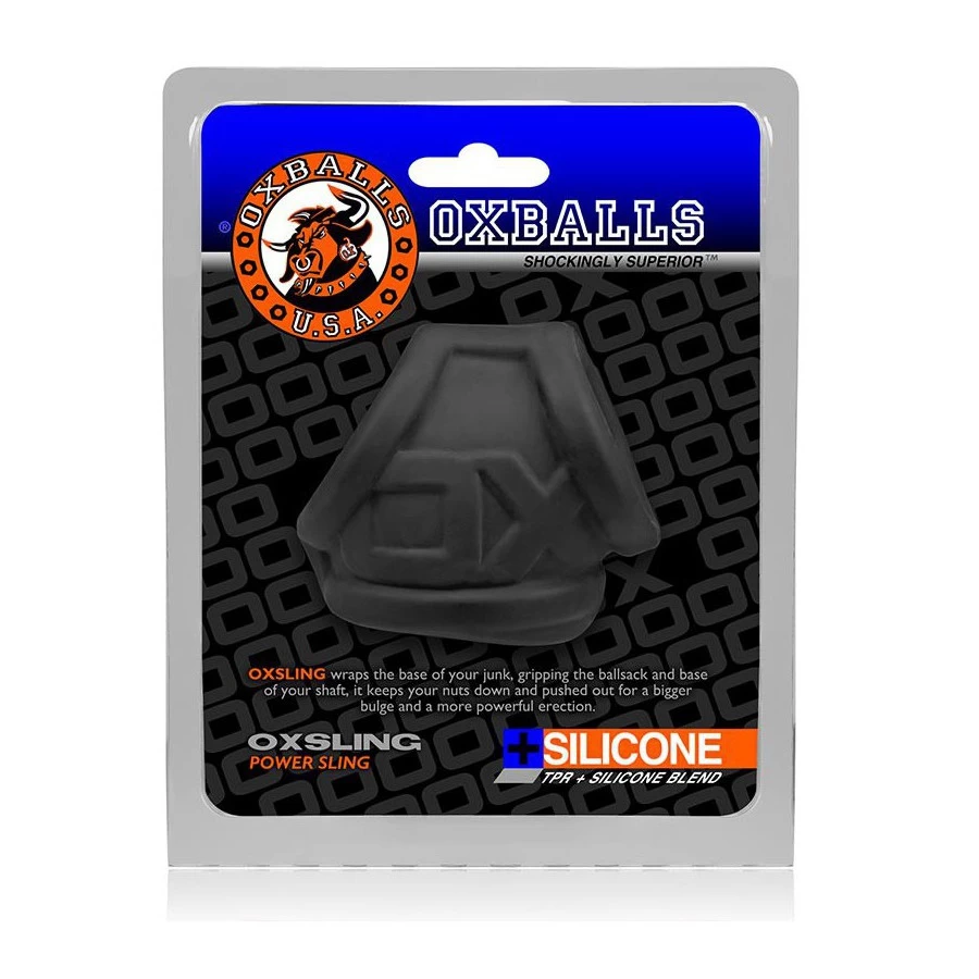 Le Oxsling Cocksling de la marque Oxballs est un ballstretcher de couleur noire réalisé en silicone et TPR.